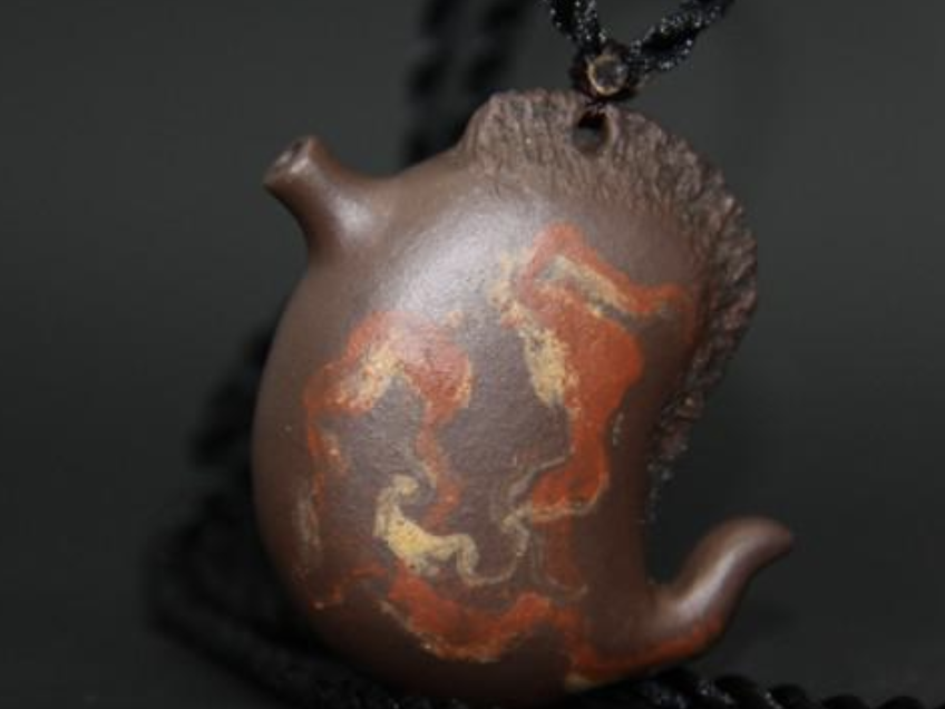 爾安排的紫砂掛飾,最大特性在于都是薄胎成型,里面中空,故弛力感強,沉量較輕,這也是創(chuàng)造中的難點地方,所以,別小瞅這小飾品,它共樣能凸顯保守功力和韻致。